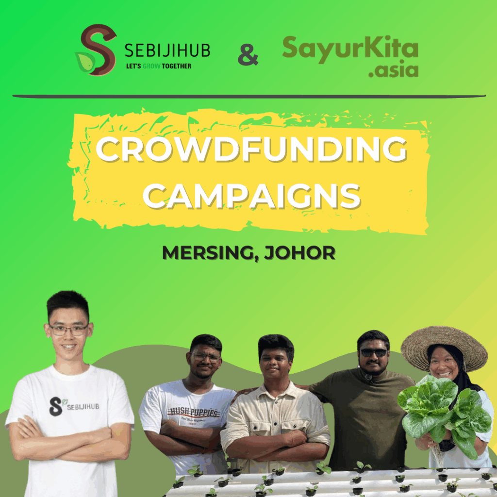 3 smallholder farmers under Sayur Kita Asia program, in Mersing, Johor, were fully funded through Sebijihub to launch their first hydroponic farms.